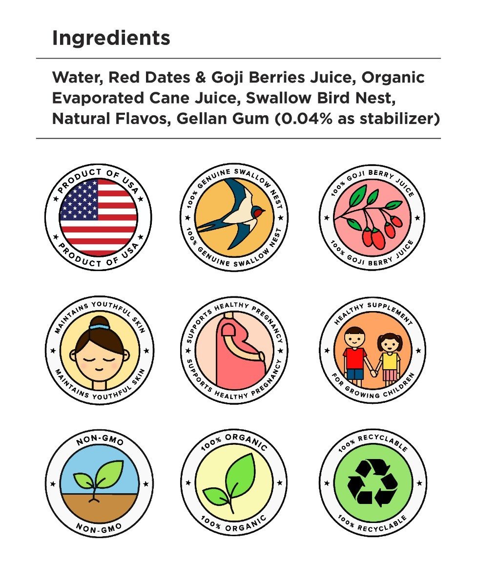 Flash Deal Premium Bird's Nest Drink - Red Dates & Goji Berries - 12 Bottles x 240ml (8 oz.)